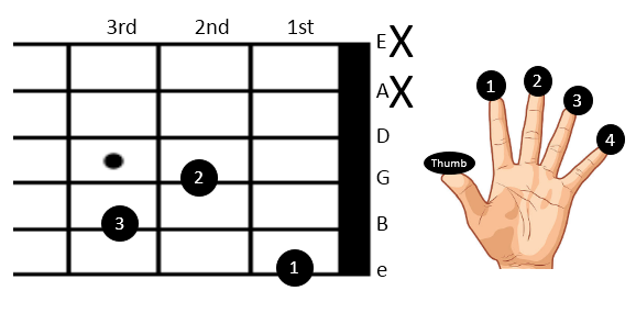 • Ring Finger: Place your ring finger on the 3rd fret of the B string (2nd string).